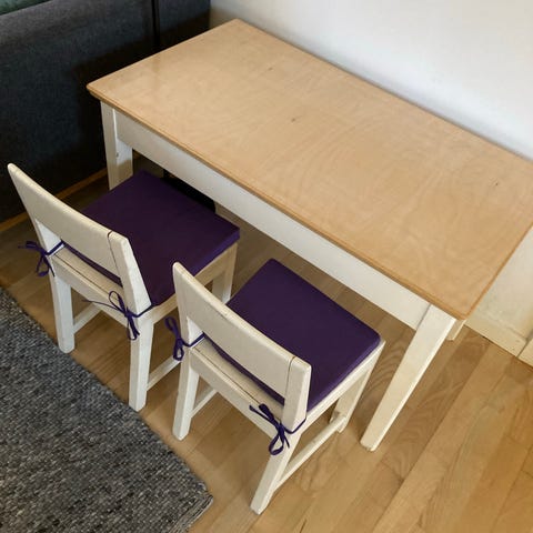 Sælger disse 6 retro stole hvor en er hukit og et bord.. Det er brugt og slidt og har nogle dumme reparationer trænger til en ornli kærlig hånd. Skal afhentes i Dragør på rosenlundsvej i tidsrummet 8-15 i hverdagene fra mandag til fredag.