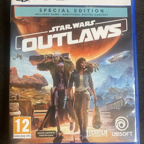 Ubisoft Star Wars Outlaws Playstation 5 spil. Spillet er en special edition og er egnet til aldersgruppen 12 år og op. Det leveres i fysisk format med disk.