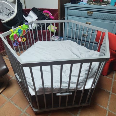 Jollyroom kravlegård. Kan bruges til at underholde baby/tumling imens man får lidt tid til rengøring og afslapning :)