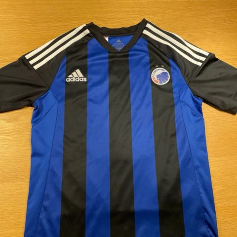Adidas FC København fodboldtrøje i hvid med guld detaljer. Trøjen har korte ærmer og er designet til fodboldbrug. Materialet er let og åndbart, velegnet til sportsaktiviteter.