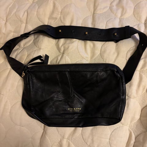Brun læder bæltetaske, der måler 17x10 cm. Tasken har én stor flaplomme foran og to holdbare bæltestropper på bagsiden, hvilket gør det nemt at fastgøre den til et bælte. Tasken er velegnet til at bære små genstande som mobiltelefoner eller personlige ejendele.