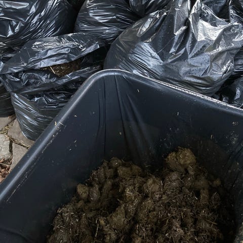 Gødning spagnum med hestemøg og hønsemøg, kan afhentes gratis efter aftale hverdage eftermiddage i 3480 Fredensborg.