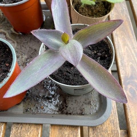 Tradescantia zebrina stueplante med grønne og lilla blade