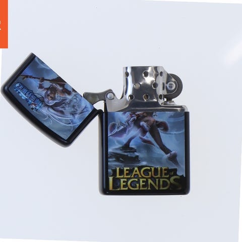 En metal lighter dekoreret med et League of Legends-tema. Lighterens overflade er dekoreret med karakterkunst fra spillet og er lukket med en hængslet låg. Lighteren har dimensionerne 5,5x4 cm. Den kommer i en pakke fra mærket EARTH Star Smoking Set.