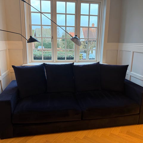 BoConcept sofa fra 2017 sælges, den har synlige brugspor, og en lille revne i stoffet i højre armlæn.
