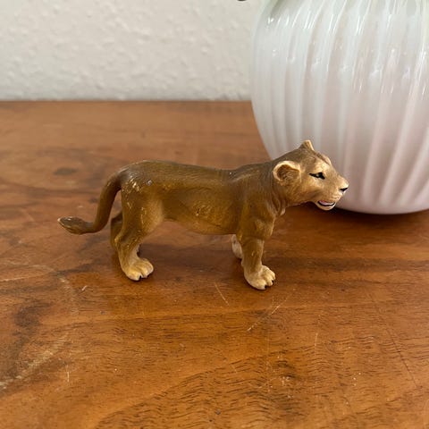 Dette er en lille tigerfigur lavet af plast. Figuren er 7 cm lang og viser en tiger i en stående position med realistiske tigerstriber og detaljerede ansigtstræk. Den er ideel som samleobjekt eller til brug i dyretemaspil.