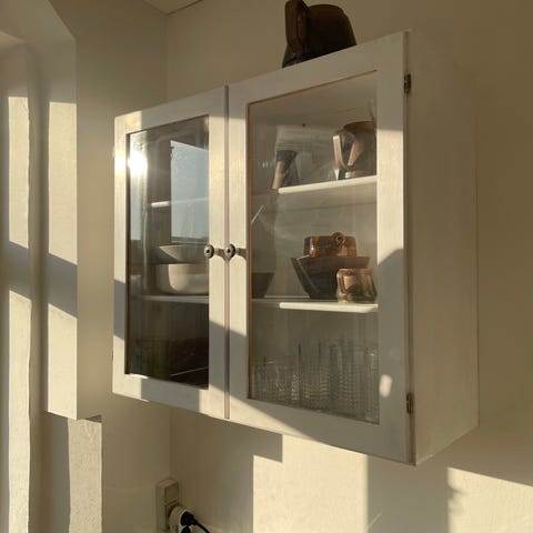 Flot ældre vitrineskab i god stand. Skal evt males.