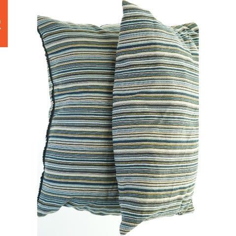 Blomstret pudebetræk med gul, hvid og blå blomsterprint. Etiket med mærket 'Liewood' synlig. Målene er 37,5x44 cm. Pudebetrækket har en åbning på den ene side.