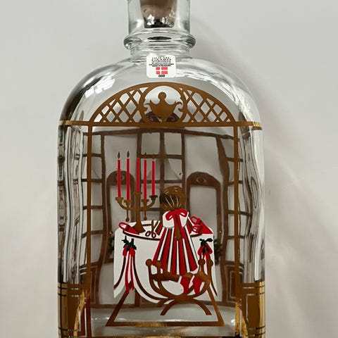 Holmegaard snapseflaske / dramflaske med original prop. Golden Christmas Holmegaard glasflaske med julemotiv, 9 stk. fra år 1983, 1984, 1985, 1986, 1987, 1988, 1998, 1997 og 2002.