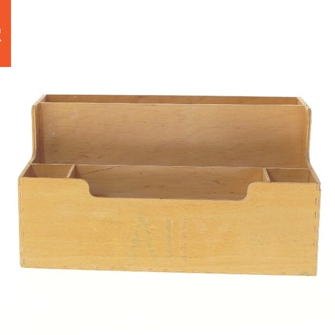 Denne brevordner har dimensionerne 33,5x17 cm og er designet til opbevaring af dokumenter, kreamaterialer, brevpapir eller lignende. To mindre smalle rum, oplagt til skriveredskaber. Den er lavet af lyst træ og har et naturligt træfarve finish. Kassen er egnet til organisering af smågenstande og dokumenter.