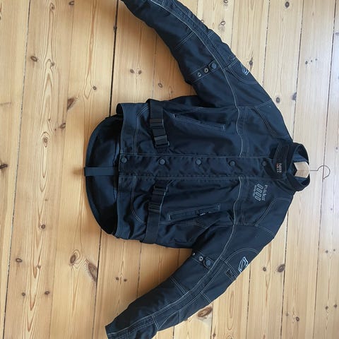 Rukka motorcykeltøj sæt bestående af jakke og bukser i sort farve. Jakke og bukser er udstyret med termofor, der nemt kan tages ud på varme dage. Sættet også kan holde dig varm fra det tidlige forår til sent på efteråret. Så et sæt der faktisk duer året rundt. Ikke meget brugt, kun "kørt" ca 1000 km. Sælges, da mcén er solgt Jakken er en str 64, og bukserne str 60, og seler kan tages af. Sikkerhedsvest medfølger. Passer en rigtig mand på 185 - 190 og ca 110 kg. Et godt kvalitets sæt, der har kostet ca 6500,- af ny.
