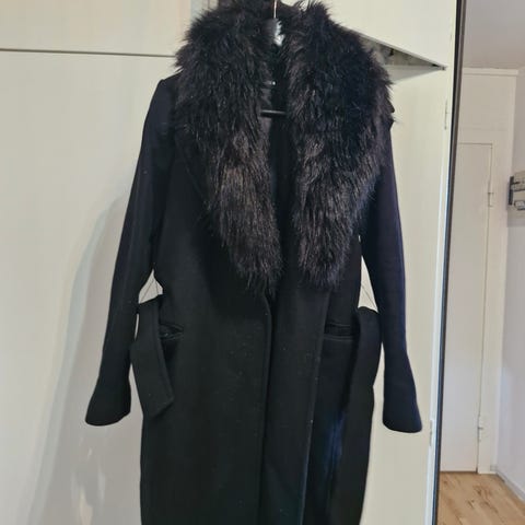 Blød frakke fra Zara i bourdeux. Farven er lidt dybere end på fotos. Str. XL, måler 105 cm i længden og 56 cm fra ærmegab til ærmegab. Meget fin stand.