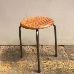 Super flot og velholdt design taburet med kraftigt sort læder sæde. 4 massive teakben som kan skrues af.