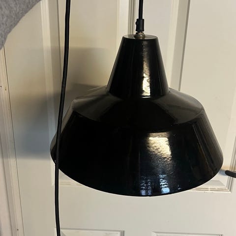 2 stk. værkstedslamper Ø28 cm i rosa og lys tyrkis. Brugte, i pæn stand. Med E27 sokkel og stofledning (brugt). Sælges samlet eller hver for sig. metal.