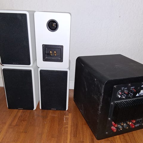(Subwoofer spiller ikke. Hvorfor vides ikke, så den står som defekt.)