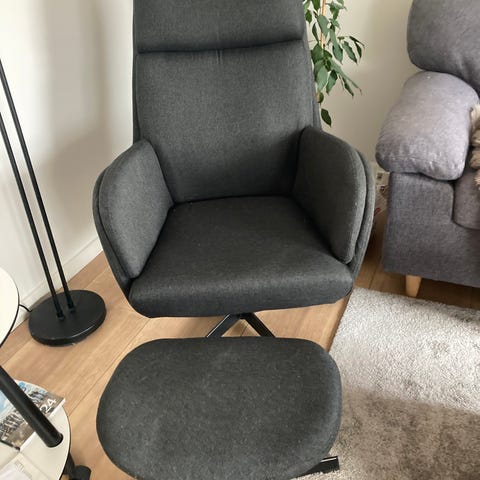 En lækker lænestol som der ikke længere er plads til her hjemme. Det står rigtigt flot. Så den vælter ikke.. spøg til side. En fin lænestol til pengene