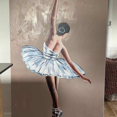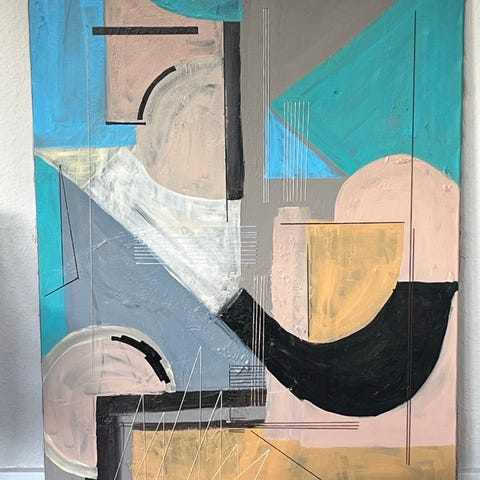 Stort flot abstrakt maleri med mennesker/ skikkelser