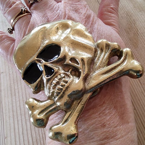 Bæltespænde med turkis sten i oval form. Spændet er udført i metal med flere turkise sten sat rundt om en central sten. Designet er unisex og kan bruges som tilbehør til bælter.