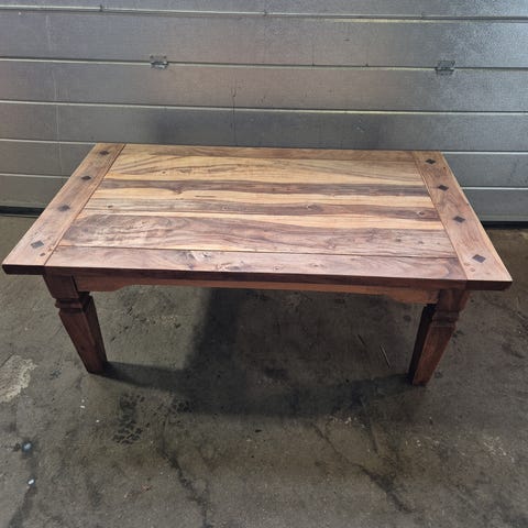 Bordpladen har brugsspor og ridser, som giver karakter og autentisk vintage-udtryk (se billeder). Konstruktionen er stabil, og bordet er i god, brugbar stand.