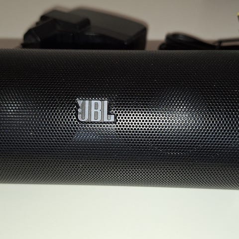 JBL Bluetooth højttaler i sort farve. Højttaleren har trådløs tilslutning via Bluetooth og er designet til bærbar brug.