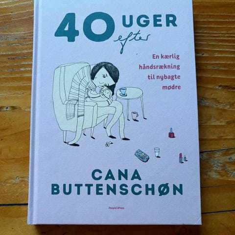 Cana Buttenschøn 40 uger efter bog med fokus på tiden efter fødslen. Indeholder information og råd til nybagte mødre. Bogen har lidt mærker på omslaget