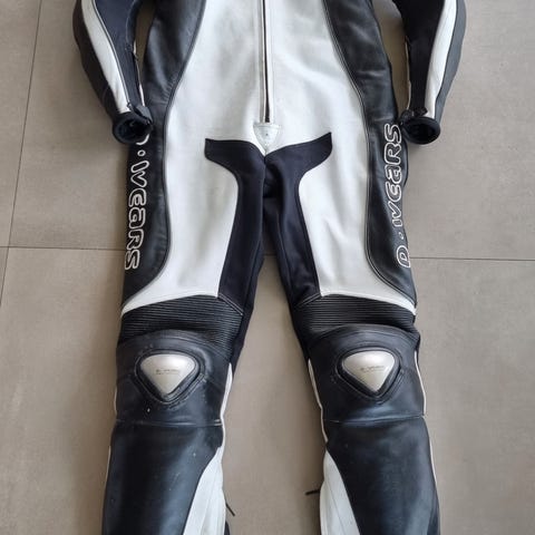 Proline motorcykeldragt i læder til damer i størrelse 36. Dragten er sort med hvide detaljer og består af jakke og bukser. Designet til at give beskyttelse og komfort ved motorcykelkørsel.