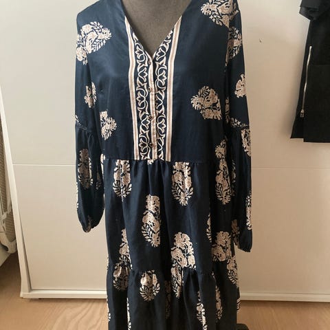 Skøn gennemknappet fløjlskjole i superblød bomuld. Er som ny. One size/oversize fra Mamelukken i Jylland. Bm 126, læ 116 cm fra skulder. Fra dyre-og røgfrit hjem.