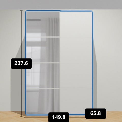 Rigtig fint Ikea pax skab med guld håndtag. Det tredje skab, som vises til venstre, kan stå for sig selv, hvis ønsket. Skabet skal selv hentes, og det bliver ikke skilt ad på forhånd. Der er plads til, at det kan bæres ud