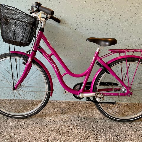En dejlig og fin pigecykel , i pæn stand, som kører rigtig godt, med 3 gear, både håndbremse og fodbremse, 2 x antipuncture dæk m.m