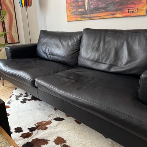 Sofaen har været brugt med lammeskind i 3 år og står derfor som næsten ny - rigtig god stand med meget få mærker.