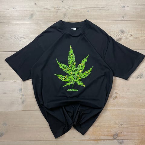 Sort Vintage Amsterdam T-Shirt Med Grønt Frontprint.