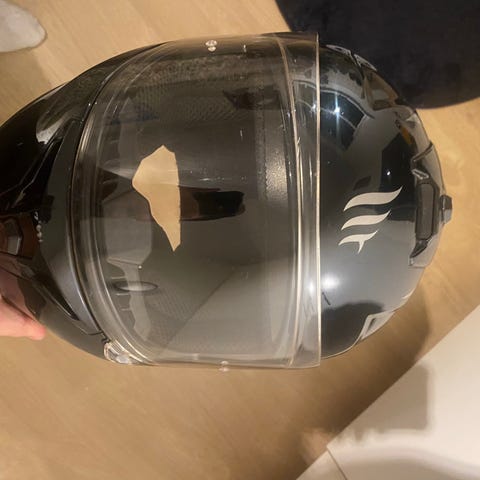 Perfekt til daglig brug eller som en ekstra. Næsten ubrugt, da jeg solgte min scooter kort efter. Den har få ridser, de fleste er foran lige ved visiret (se billedet), hvor det går op og ned. Men man lægger ikke mærke til det, når visiret er nede.