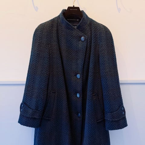 Den er mørkeblå, med det smukkeste, ternede uldfoer.