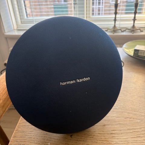 Harman Kardon Citation 200 trådløs Bluetooth-højttaler med stofbetræk i sort. Designet til trådløs musikafspilning (ca. 8 timer) med bærbar funktionalitet og indbygget håndtag, ladefod medfølger selvfølgelig.