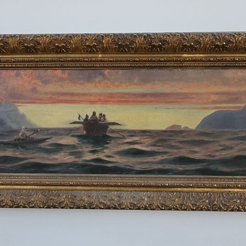 Smukt gammelt og sjældent maleri af Grøndlandske fangere på havet ( uden ramme )