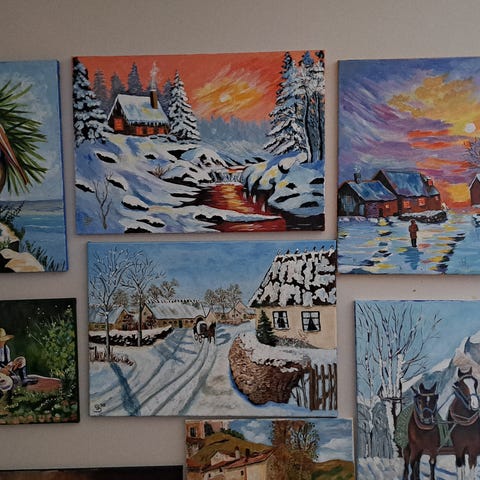 Malerier med epoxy og akryl - 8 stykker