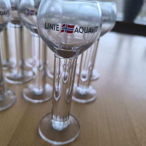 Linie Aquavit Glas 4 cl H 14,4 cm, 2 stk. ubrugte, sælges pr. stk. 75,-