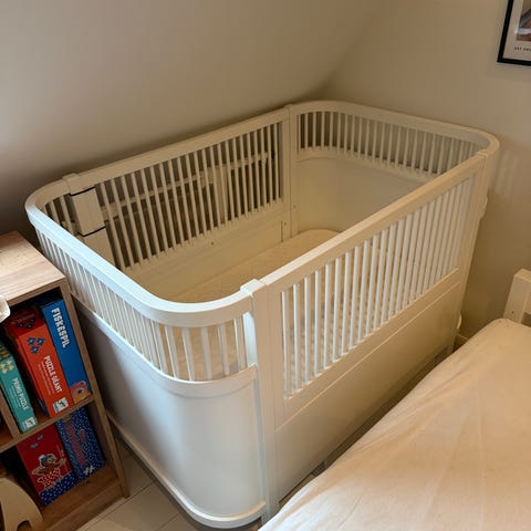 Vi sælger en brugt Sebra seng inkl. Sebra madras + forlænger til når den skal laves til juniorseng.