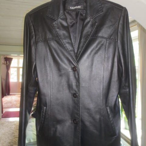 Cool sort blazer i læder. Størrelsen hedder XL, men passer bedre til M-L.