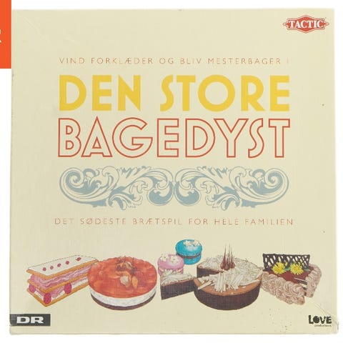 Den Store Bagedyst brætspil med tema om bagning og kagekonkurrence. Spillet indeholder spilleplade, kort og brikker med kageillustrationer. Egnet til flere spillere og familiebrug. Det 7+ år, men kan sagtens spilles af 6år og op efter, hyggeligt og lidt udfordrende spil for børn og voksne.