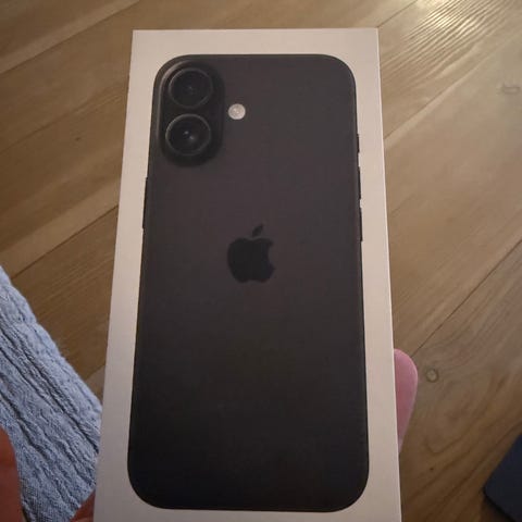 Iphone 16 i sort med 128gb i super god stand batteriet er stadigvæk godt inkl æske og opladerkabel.