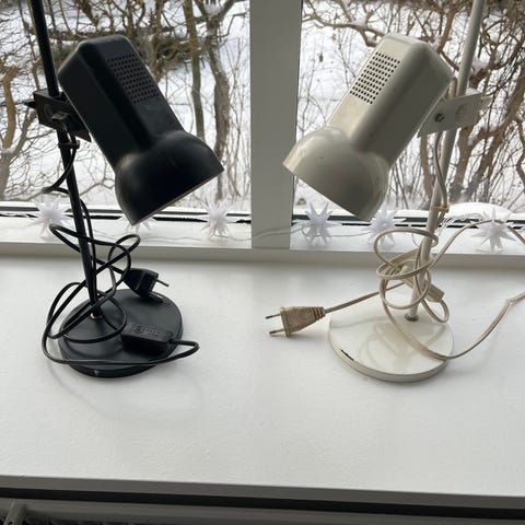2 stk skrivebordslamper i bakkelit,aluminium og stål.