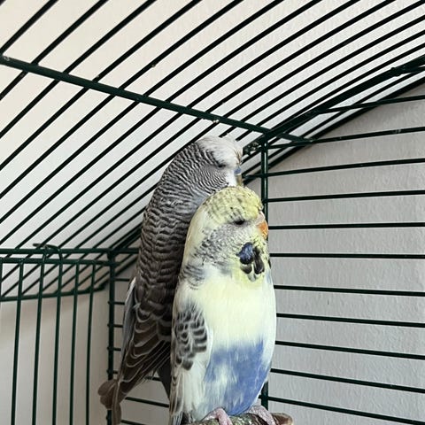 Vi sælger to smukke blå undulater i forskellige nuancer, en han og en hun. Bur og tilbehør følger med. Undulaterne er endnu ikke tamme, men kan lokkes på hånd med mad, og er glade for æbler. Undulaterne er fra denne sommer.