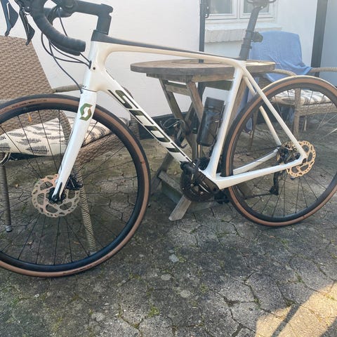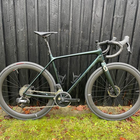 Super flot og velholdt Scott Addict 20. Den har nok en at de pæneste lakeringer, med både mat og metallik grøn, som giver forskellige nuancer. Cyklen er både for dig, som vil ud at køre stærkt, langt eller bare en rolig tur.