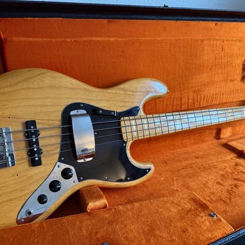 ARTIST OWNED by prolific bassist DeLisle McKenzie Harper since he purchased the bass in 1977 from the famous Top Gear Music shop on Denmark Street in London. One of two vintage Fender basses I have available from him for sale here. Harper famously stars in the music video for Stealers Wheel's global mega-hit "Stuck In The Middle With You" which was the song played for the main scene in Quentin Tarantino's debut film, "Reservoir Dogs" and is the theme songs for the hit Netflix series "Gracie & Frankie." Harper performed and recorded with many big artists in the 70's and 80s. He was the bassist and backing vocals for Deep Purple & Whitesnake singer David Coverdale on his solo album White Snake, which led to the creation of Whitesnake. His playing was sampled on the Everlast hit album "White Ford Sings The Blues." Harper was a member of Juicy Lucy alongside Micky Moody - the band had an immediate hit song "Who Do You Love?" He was also a member of Gonzalez and had a chart hit "Haven't Stopped Dancing Yet" where he features in the music video with the other Precision bass of his we have. He was the bass player for American blues guitar legend Freddie King, one of the "three kings" of blues guitar alongside Albert King and B.B. King. Harper was a member of Olympic Runners who had a chart hit "Put The Music Where Your Mouth Is" and did the theme song for the movie "The Bitch" starring Joan Collins.