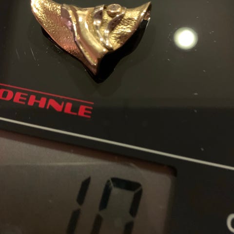 Det er blevet nænsomt pudset med smykkeklud, og kan nemt komme til at stå helt skarpt igen ved et hurtigt besøg hos en guldsmed.