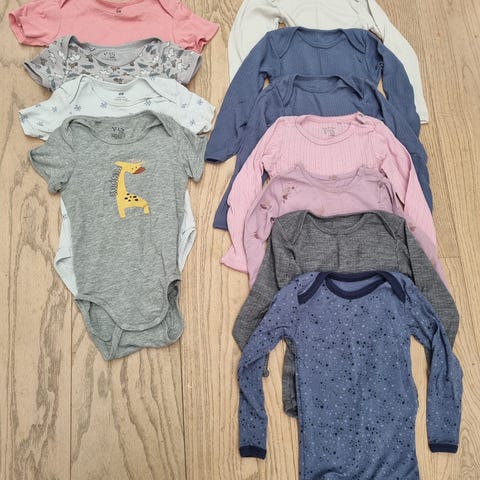 7 body'er, 3 m korte ærmer og 4 med lange ærmer str 86/92