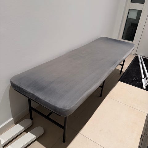 Flot bænk til spisebord i grå velour