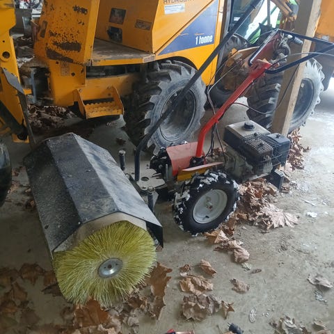 Fejemaskine med Grillo motor brugt til fejning af sne på fortov