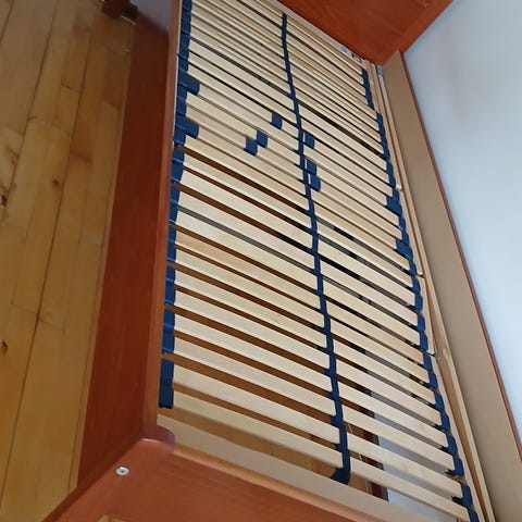 BoConcept elevationsseng med justerbar ramme og medfølgende fjernbetjening. Sengen har lamelbund og metalbeslag til hæve- og sænkefunktion. Materialet er primært træ og metal. Der mangler en låse bøsning på den ene bøjle men den kan købes i jem og fix